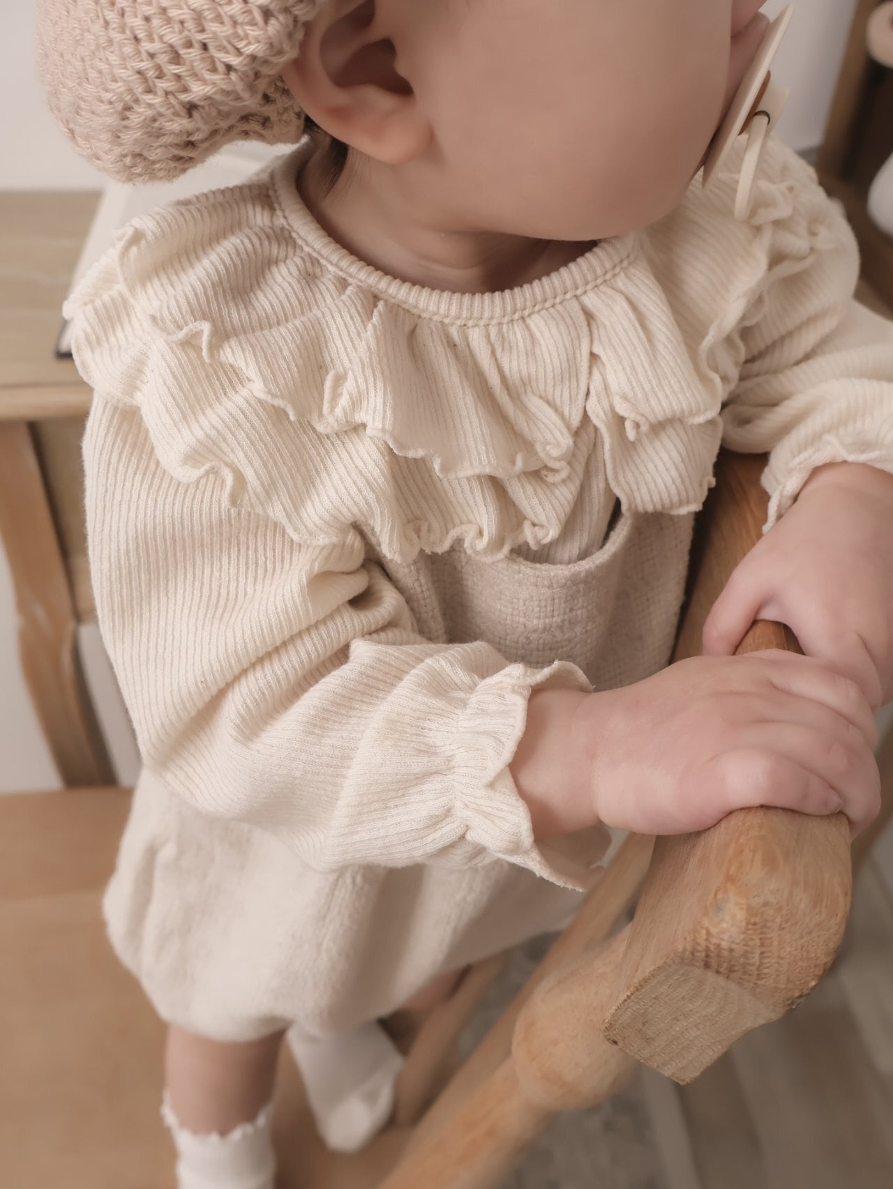 ナチュラルな雰囲気のリブトップス。