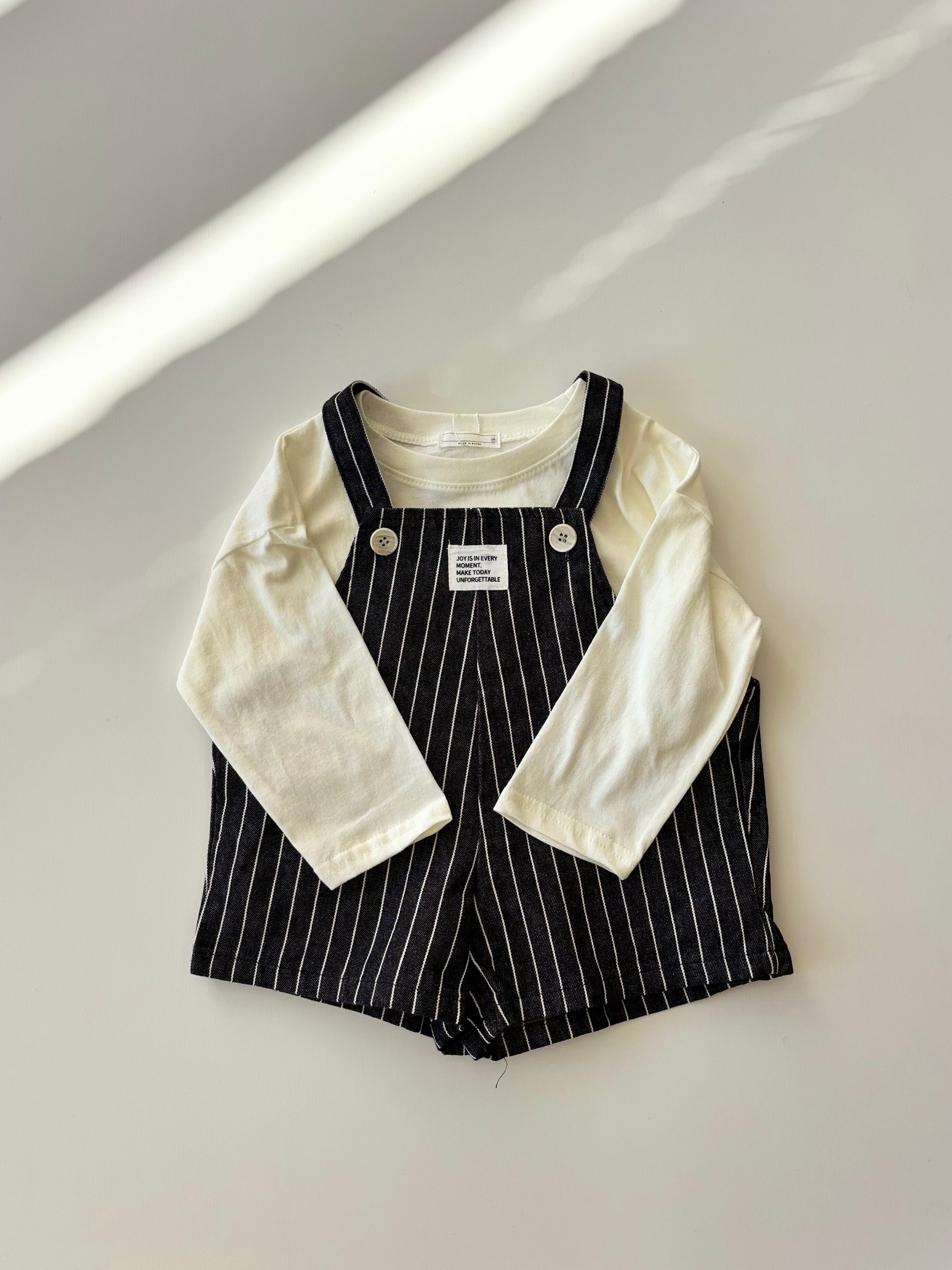 ストライプ柄のサロペットがセットになったアイテム。