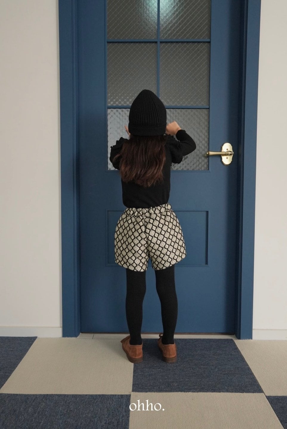 【即納 Last1 black L(110)】ohho blanc jacquard pants 24wk2 (韓国子供服 ジャガードショートパンツ)